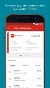 é nesse momento que você deve fazer login ,caso já possua uma conta, ou criar uma conta informando o CPF do titular do cartão, nesse caso o beneficiário. com o cadastro devidamente feito, e se seu cartão já estiver sido emitido pela Ticket, você verá a seguinte tela, onde você poderá ver o saldo, extrato dos últimos lançamentos e data do próximo credito.